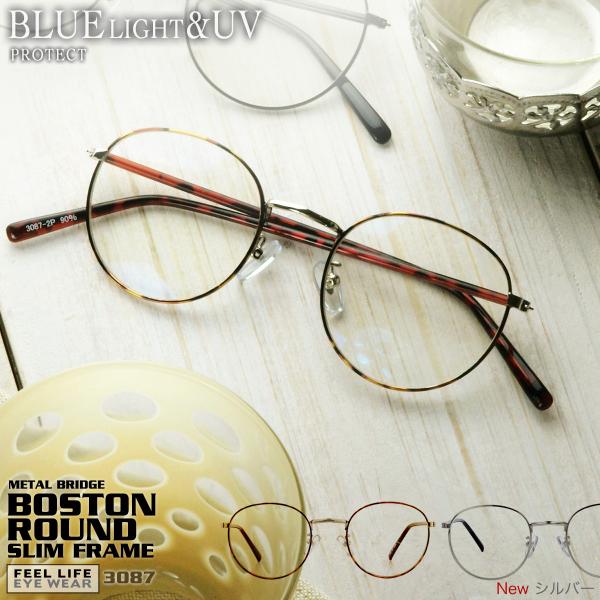 ブルーライトカット 伊達メガネ おしゃれ レディース ラウンド 細フレーム ボストン 丸メガネ Pcメガネ Uvカット べっ甲柄 シルバー 3087 3087 オプティックストアグラスガーデン 通販 Yahoo ショッピング